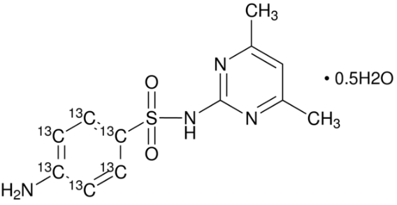 Sulfamethazine-(phenyl-13C6) hemihydrate; Benzene-?1,?2,?3,?4,?5,?6-?13C6-?sulfonamide, 4-?amino-?N-?(4,?6-?dimethyl-?2-?pyrimidinyl)?-?, hydrate (2:1)