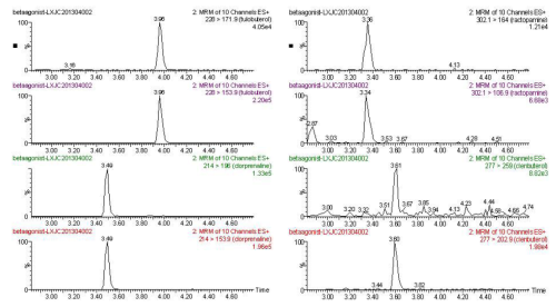 9 種β- 受體激動劑特征離子質(zhì)量色譜圖: