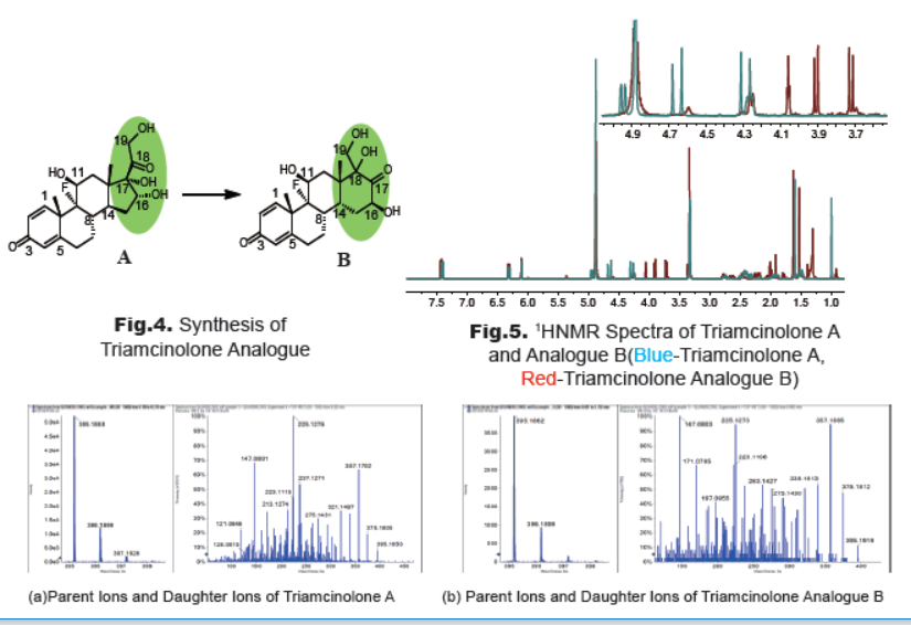 Fig.6. MS-MS Spectra of Triamcinolone A and Analogue B with Optimized Condition